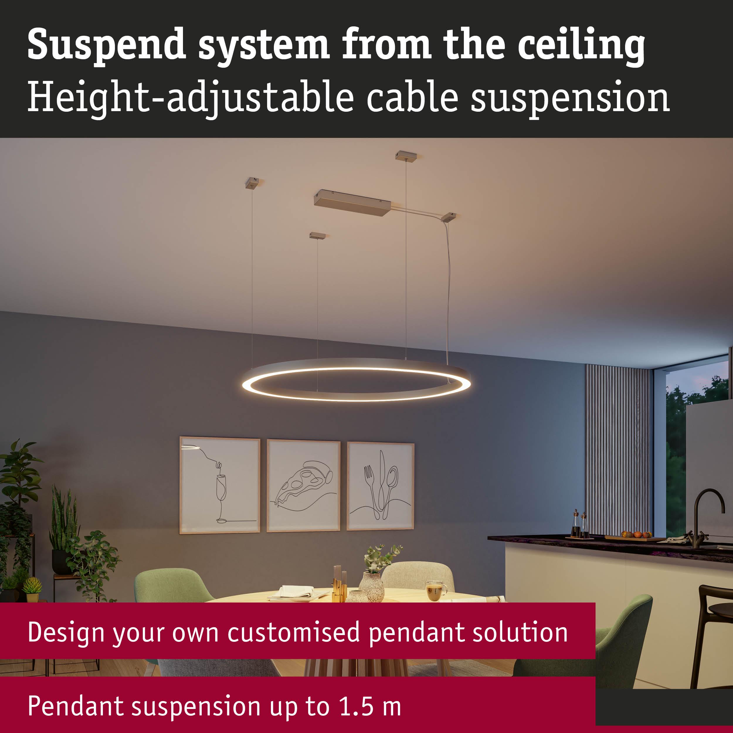 Das einzigartige Lichtkanalsystem Linion setzt neue Maßstäbe, wenn es um die individuelle Raumbeleuchtung geht Mit dem ästhetischen und klaren Design sorgt das System für eine ansprechende und fließende Beleuchtung, die maximale Flexibilität mit hoher Funktionalität vereint. Egal, ob das Lichtkanalsystem als Decken- oder Pendelmontage besser im Raum zur Geltung kommt – Linion lässt großen Gestaltungsspielraum. Eine Pendellösung lässt sich mit der 1,50 Meter Linion Seilabhängung realisieren. Die Seilabhängung kann am Deckenbaldachin eingeschoben oder gekürzt werden. Dies sorgt für eine beeindruckende Lichtinszenierung und schafft eine einladende Atmosphäre in verschiedenen Räumen, sei es im Essbereich, im Wohnzimmer oder im Arbeitszimmer.
