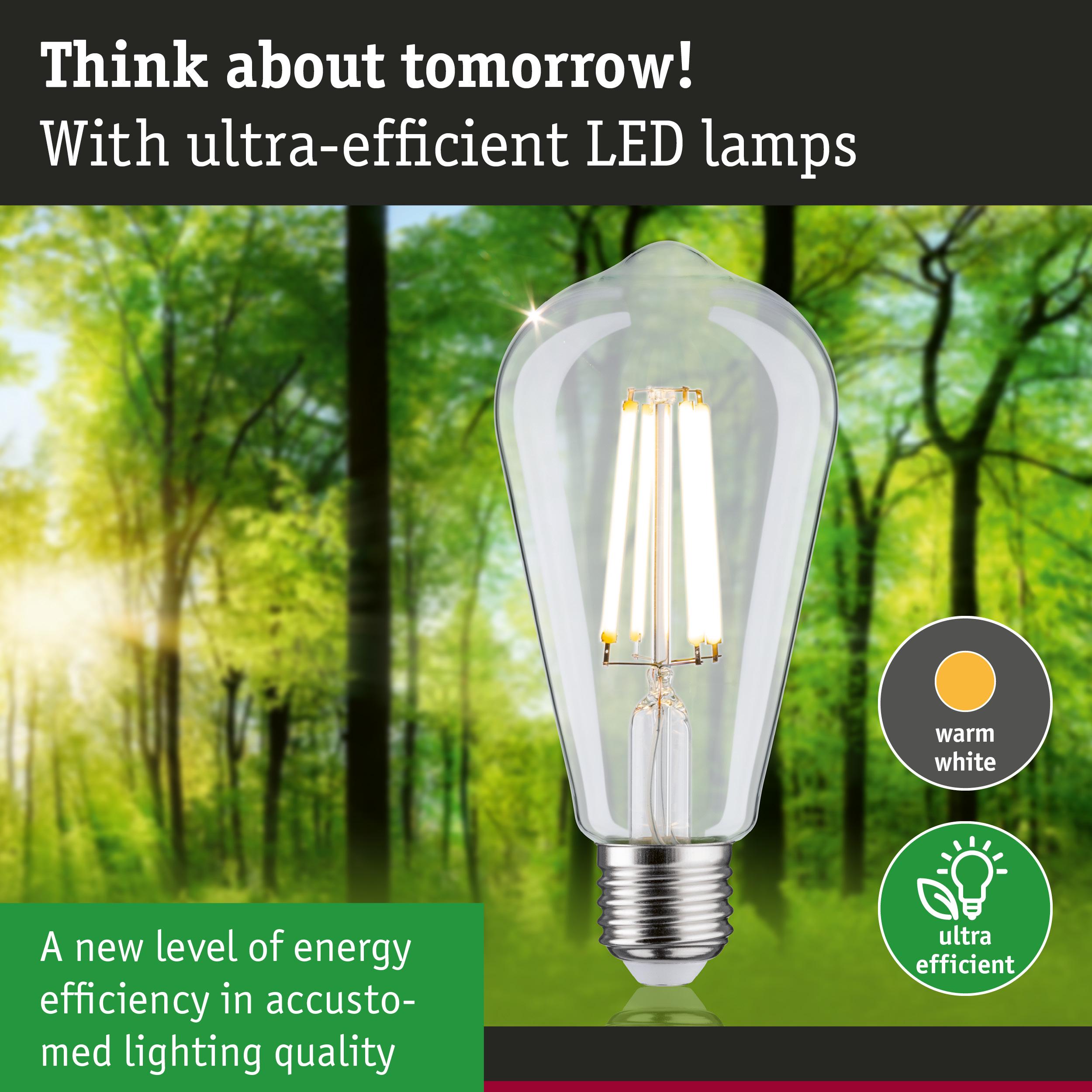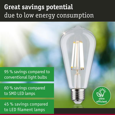 The ultra-efficient Eco-Line lamps combine innovation with sustainability. Thanks to the 60% lower energy consumption and the significantly longer service life compared to standard LED lamps, these lamps can significantly reduce energy costs and protect the environment. The clear filament corn lamp with 3000K, an output of 4W and 840lm emits light in all directions with no green cast. Corn lamps are perfect for creating a vintage ambiance and are real eye-catchers in retro style pendant luminaires. It comes in a warm white light colour and fits any standard E27 fitting. The Paulmann LED lamps with the Eye friendly label emit gentle-on-the-eyes, comfortable light. Luminaires help create eye comfort – while working, reading, or relaxing.