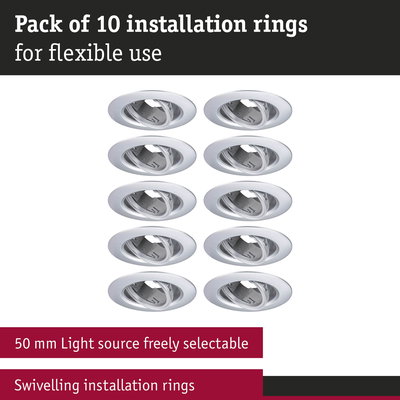 Recessed Luminaire 10-piece set Swivelling round 90mm 30° GU10 max. 10x10W 230V dimmable Chrome matt