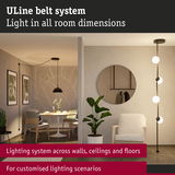 The ULine System 150 VA Installation Set provides the perfect basis for a customised lighting installation. This comprehensive set contains everything you need to get started: clamps, a straight bracket, end caps, power supply, a transformer cover and a powerful transformer. Belts, luminaires and other brackets can be added individually as required, ensuring maximum flexibility and creative freedom. The ULine belt-system is an innovative solution for unique lighting experiences in all dimensions and enables targeted lighting effects on walls, ceilings and floors.