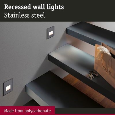 Set LED Recessed wall luminaire Edge 3-piece set angular 80x80mm 3x1,2W 3x50lm 230V 2700K Black matt