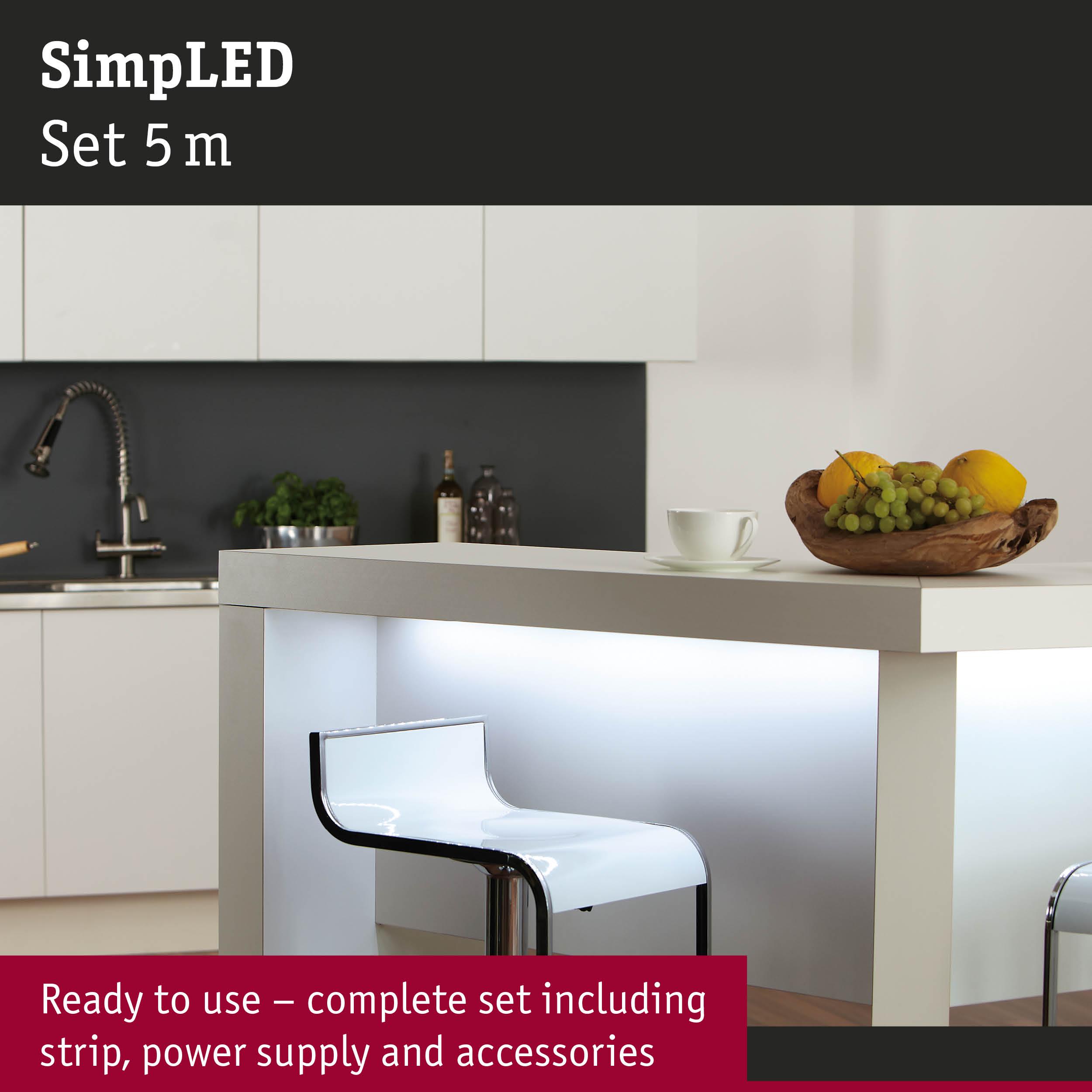 SimpLED LED Strip Daylight white Complete Set 5m coated 11W 310lm/m 60 LEDs/m 6500K 18VA