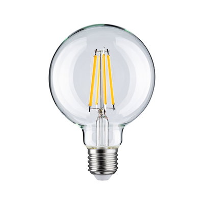 The clear, all-glass LED filament globe with 1055lm is dimmable and emits a bright light in living area luminaires with a shade or tinted glass. With its E27 base, a colour temperature of 2700K and an output of 9W, the lamp is specially designed for use as the main light source in living spaces. The Paulmann LED lamps with the Eye friendly label emit gentle-on-the-eyes, comfortable light. Luminaires help create eye comfort – while working, reading, or relaxing.