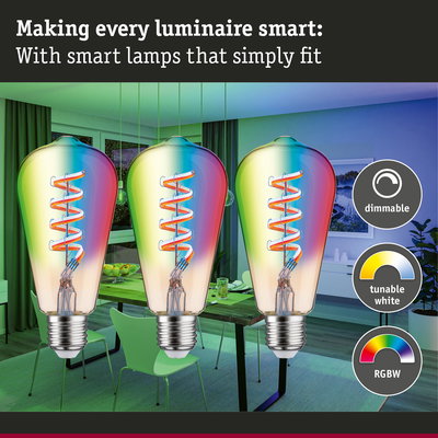 230 V Filament Smart Home Zigbee 3.0 LED Corn ST64 E27 3x470lm 3x6,3W RGBW+ dimmable Gold