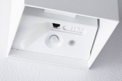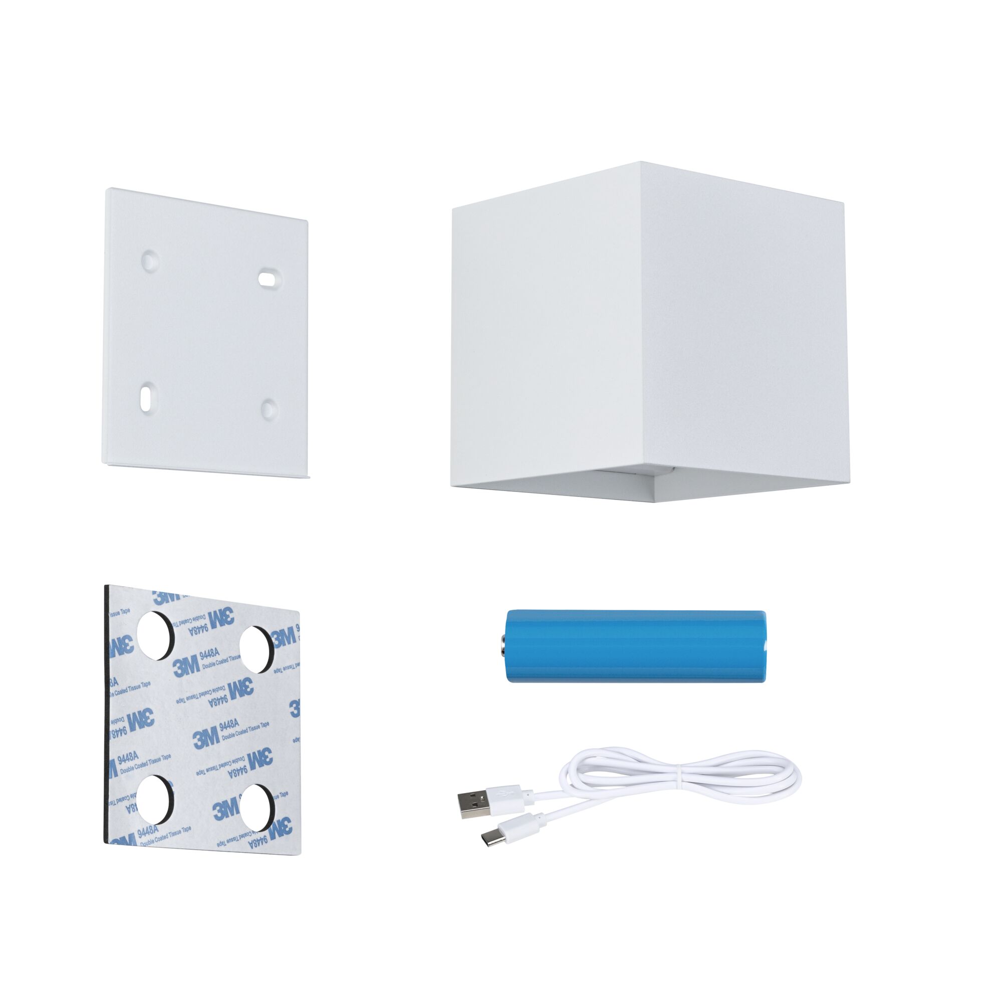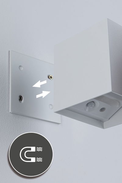 The angular rechargeable Nyara wall luminaire in White with integrated motion sensor is a perfect choice where a functional auxiliary or orientation light is needed. As there is no need for a power outlet, it can be used in the living room, hallway, and – thanks to its IP44 protection – even in the bathroom, on the balcony, or on an external wall. The luminaire offers three setting options: On, Off, and Auto. Switched on, the luminaire continuously emits warm white light at 40% brightness. In Auto mode, the dusk-controlled motion sensor is activated, and the light automatically switches to 100% brightness for maximum comfort and security. Light time in Auto mode is at around 8 hours, and 23 hours in On mode. The luminaire deactivates after 30 seconds if no motion is detected or ambient brightness surpasses 30 lux. The included USB-C charging cable guarantees quick charging times of the rechargeable battery in 6 hours. As an installation aid, the magnetic backplate can be glued or bolted to the wall. It ensures that the luminaire is quickly and easily removed for charging.