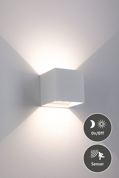 LED battery-powered wall lamp Nyara incl. Twilight-controlled motion detector (HF) IP44 3000K 100x100mm 2x1W / 1W White