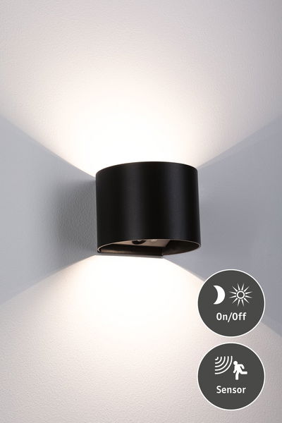 LED battery-powered wall lamp Nyora incl. Twilight-controlled motion detector (HF) IP44 3000K 135x120mm 2x1W / 1W Black