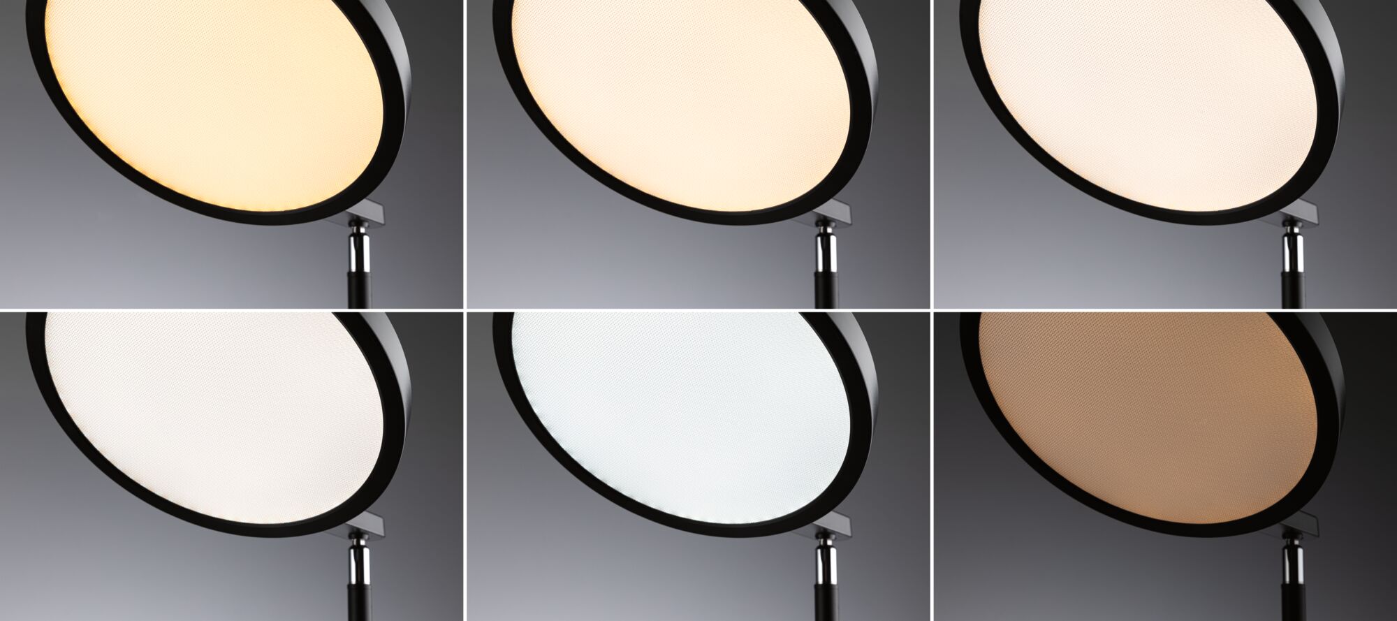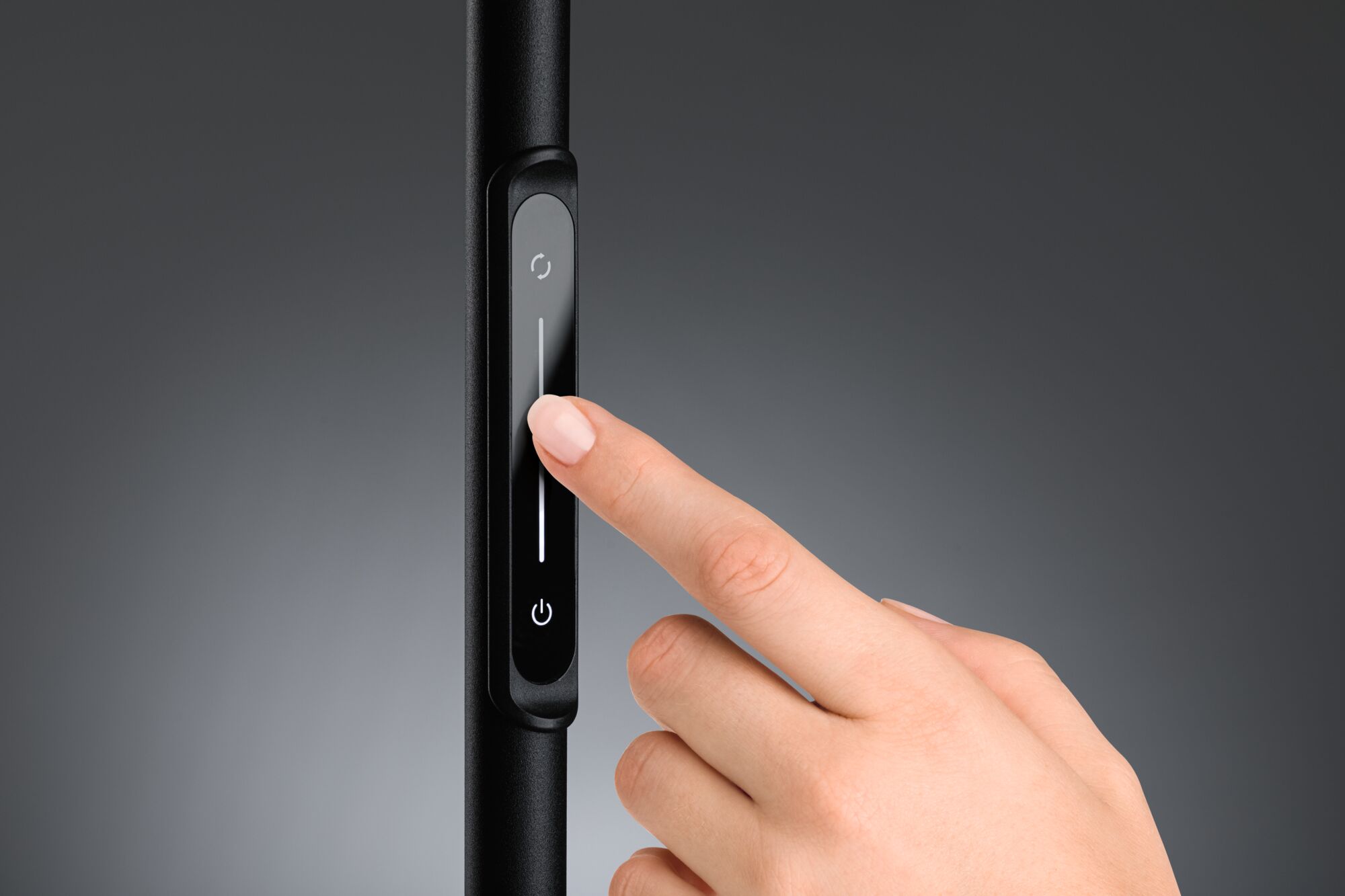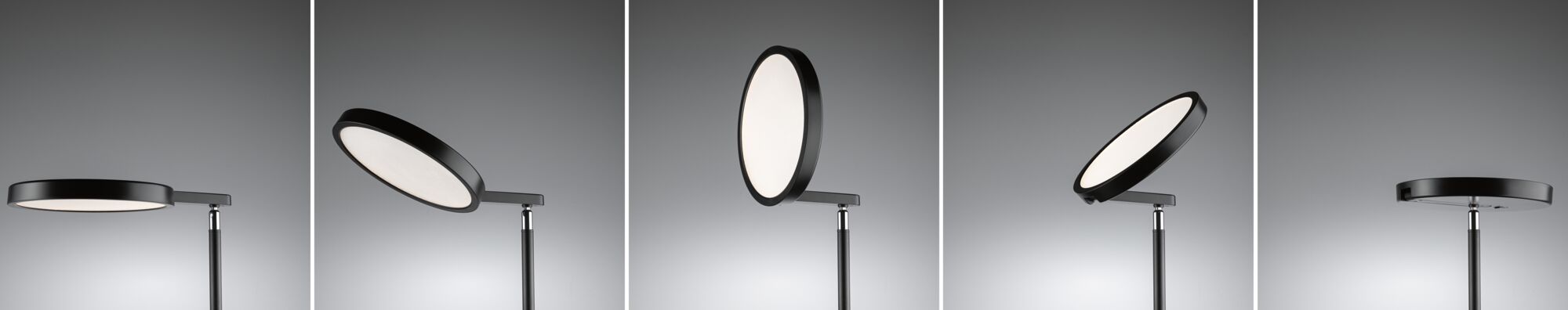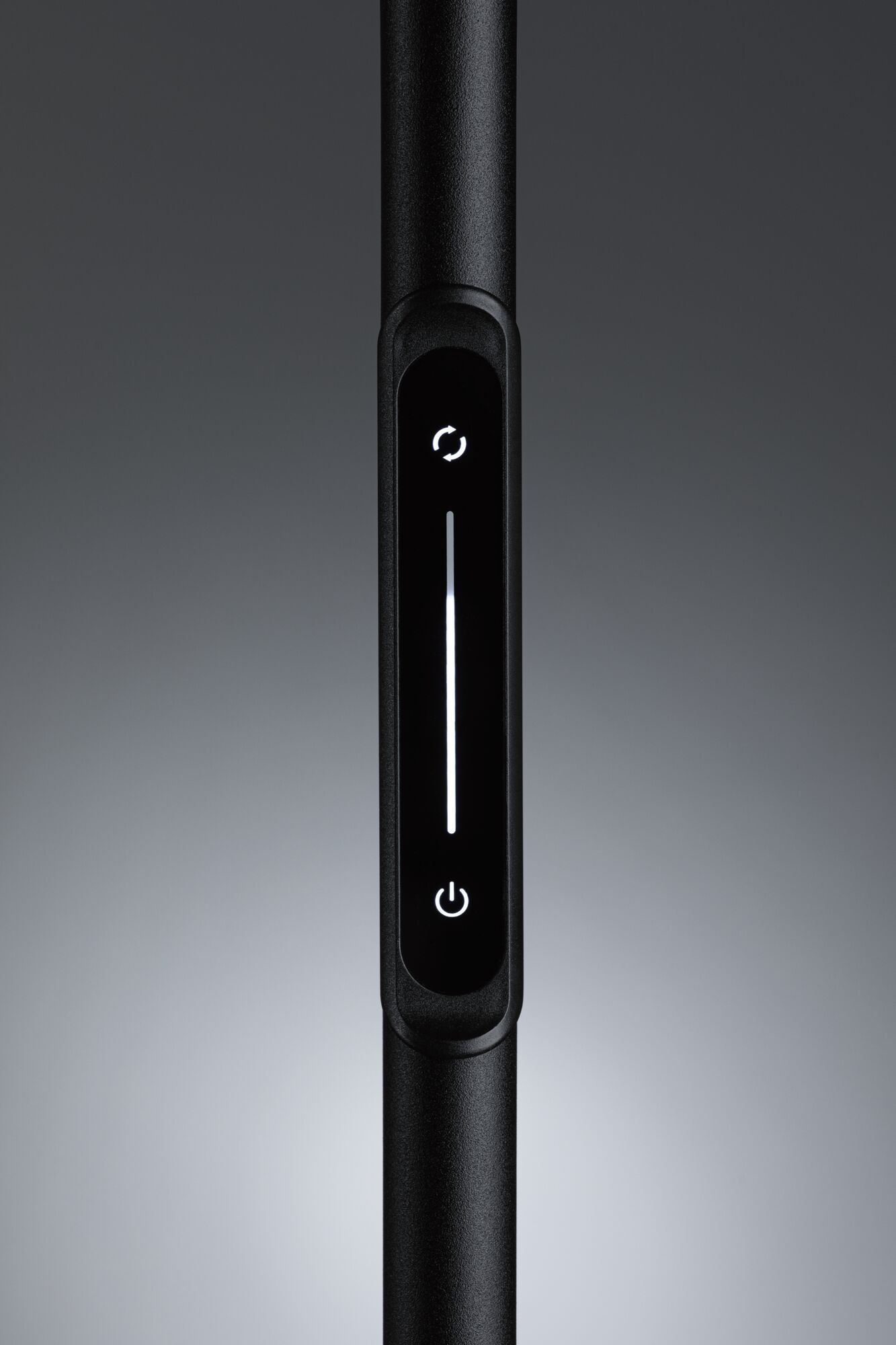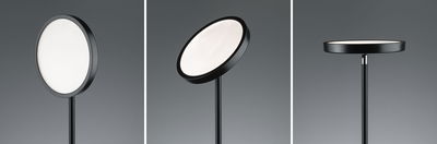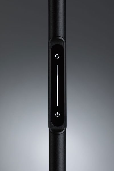 The elegant, timeless design in black of the Caneta floor luminaire combines 2570 lumen with long-life LED technology (30,000h service life) for high light output. Ambience and functional illumination for productive work are combined to perfection. The luminaire’s function can be changed from a ceiling uplight to a directed spotlight in a single motion – perfect for flexible uses in the living room, a corner desk, or an entire home office. The White Switch feature allows a choice of five colour temperatures from warm white (2,700K) to daylight white (6500K) directly on the operating element. For even more precise light control, the luminaire can be optionally set via the supplied remote control featuring Tunable White. All these features make this luminaire a perfect choice for multi-functional living spaces: cool daylight white for better concentration at work, and warm white light for a welcoming, relaxed ambience in the evening. The brightness of the floor luminaire can additionally be adjusted with stepless dimming, so you can set the lighting atmosphere you want - whenever you want. Other features include the integrated Night Light function for gentle illumination at night for easy orientation in the dark, as well as the Memory function, which saves the most recent setting for the next time the luminaire is switched on.