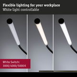 Efficient working with the right light! This technically sophisticated floor luminaire with 1450 lumen was developed specifically for the requirements of modern home office workplaces. The luminaire features a steplessly adjustable brightness feature to precisely adapt the light intensity to any phase of the workflow – from focused work to a relaxing break. The integrated White Switch technology also allows a choice of three light colours: 3000K, 4000K, and 5000K. That is how the right light ambience can be choses depending on the task at hand and the time of day – from stimulating, daylight-adjacent white to neutral white work light, and calming warm white. At the same time, the luminaire has the kind of flexibility and individual adjustment options that will always ensure precise illumination without compromise. Ergonomic, adaptable, and performant – a reliable lighting solution for any workplace.
