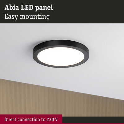 The rounde Abia panel in Black matt in a practical set of 3 offers a very flat installation height and ensures a fine and uniform diffusion of light with the satinised plastic cover. The unobtrusive design and clear lines harmonize with homely, modern styles and architectural ambience and are particularly suitable for use in living rooms, hallways or offices. With a color temperature of 2700 K, the panels provide a pleasant warm white light ambience.