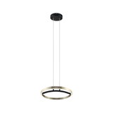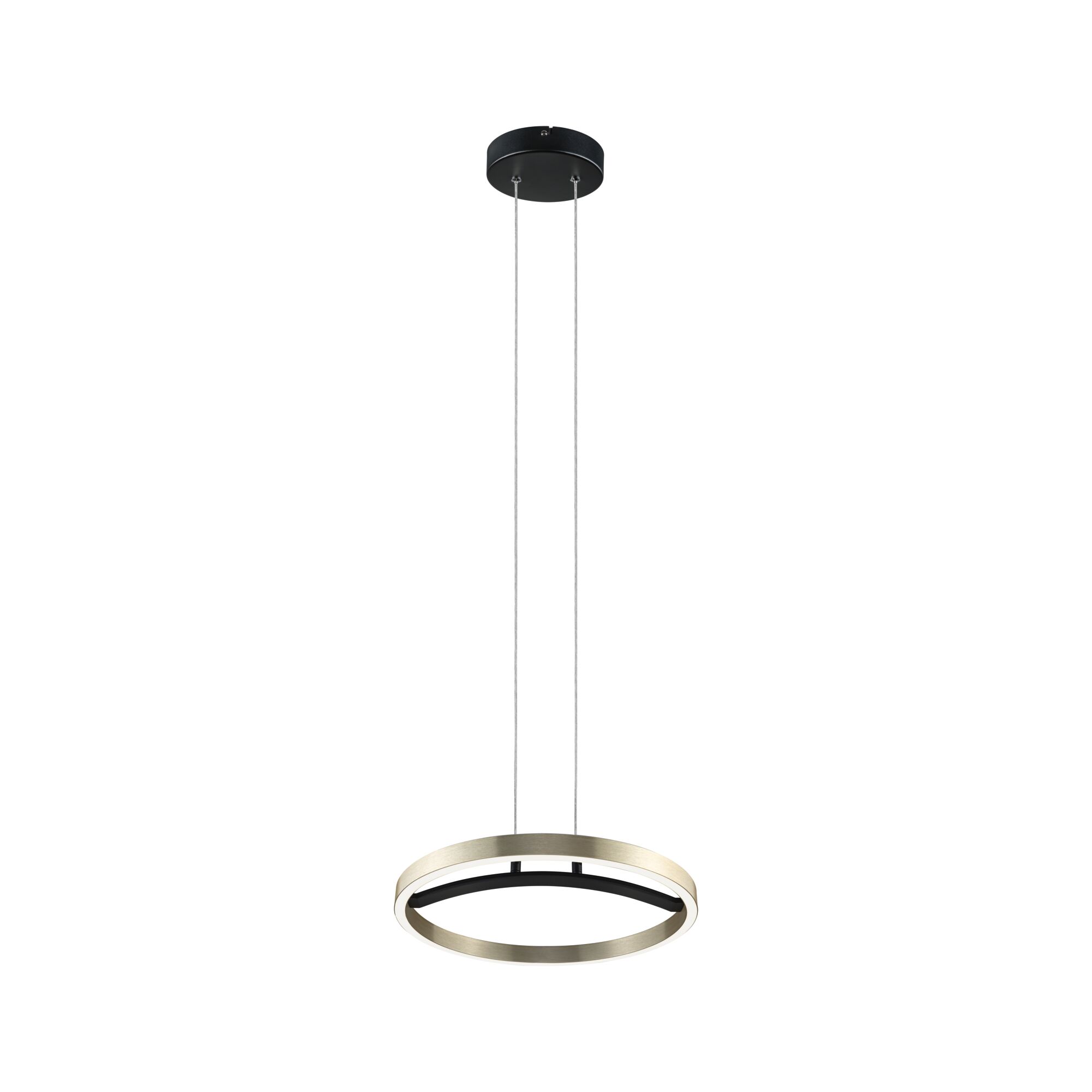 Eye-catching with a luxurious touch! The Melira luminaire series impresses with its elegant ring design in the trendy color gold brushed and black matt. The table, floor, pendant, wall and Deckluminaires in the series can be flexibly combined to create a uniform lighting concept. With a ring diameter of 380 mm, the pendant luminaires lend modern living spaces a stylish and expressive elegance. It can be easily and delicately adjusted in height - without any tools! The interplay of indirect light emitted upwards and direct light downwards creates an atmospheric lighting effect. The integrated LEDs in the luminaires, which emit a warm white light of 2700 K, create a pleasant lighting ambience. The brightness can be dimmed to 3 levels (100%, 40% or 10%) as required using a standard wall switch.