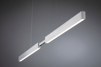 The adjustable Aptare LED pendant luminaire in Brushed aluminium is perfect for illuminating extendable tables. This makes it particularly suitable as an elegant lighting solution in the living room or dining room. It can be easily adjusted to the length of the table as required without tools. It can be adjusted in height from 90 cm to 150 cm and extended from 132 cm to 180 cm. Thanks to the two-way light emission, the pendant luminaire provides pleasant ambient light upwards and perfect illumination of the table area downwards. It also impresses with a high light output of 2240lm. Create customised lighting atmospheres with the infinitely adjustable colour-change function: from daylight white light for working, to warm white lighting for relaxation, to coloured lighting effects for an atmospheric ambience. The memory function saves the last selected setting until the next time it is switched on. Thanks to the integrated Zigbee 3.0 interface, the brightness and light colour can be conveniently controlled smartly via app, voice command or remote control.