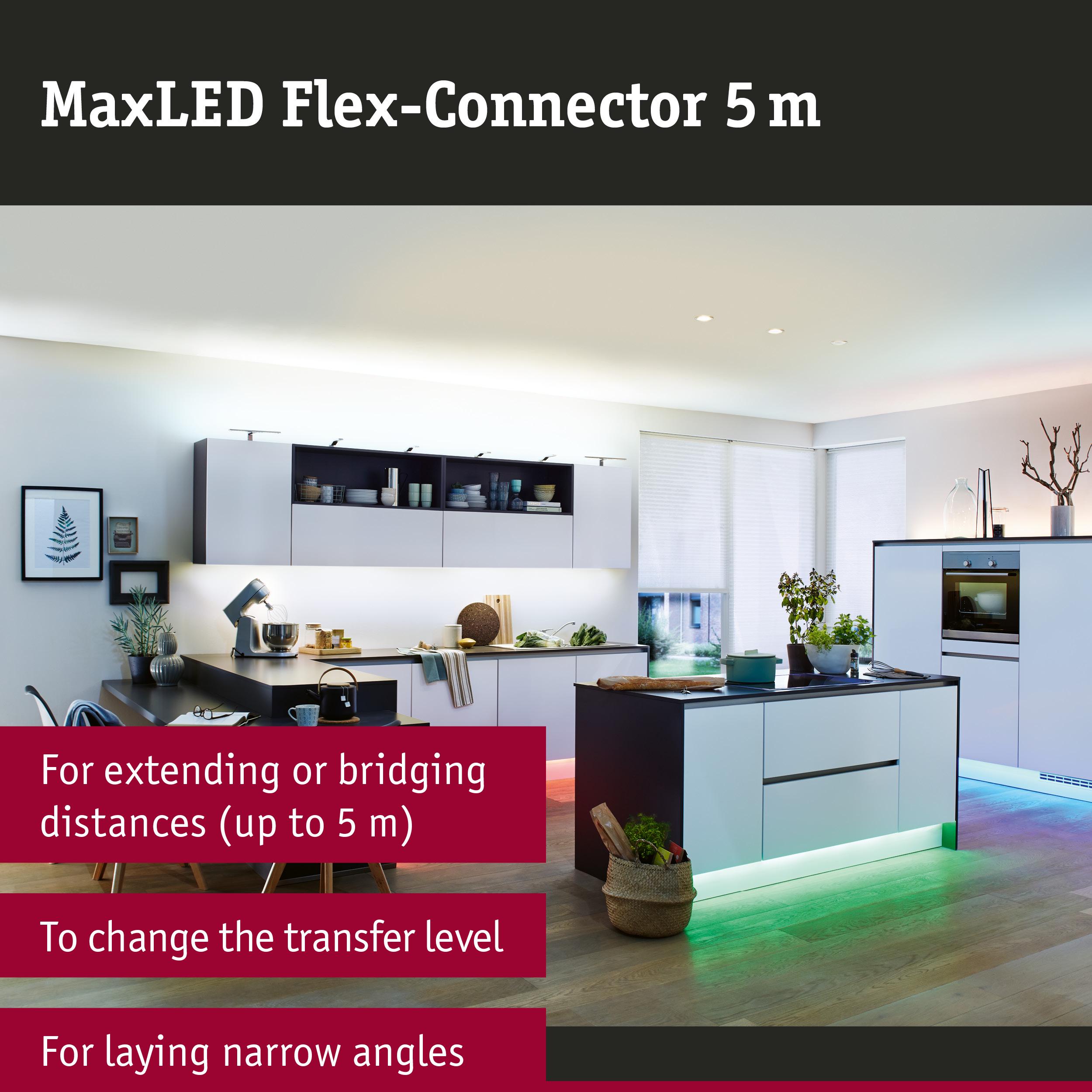 MaxLED connecting cable to extend or bridge short distances up to five metres, to compensate for unevenness and for installation in tight radii or for change in the installation level. 5-pole for 24 V.