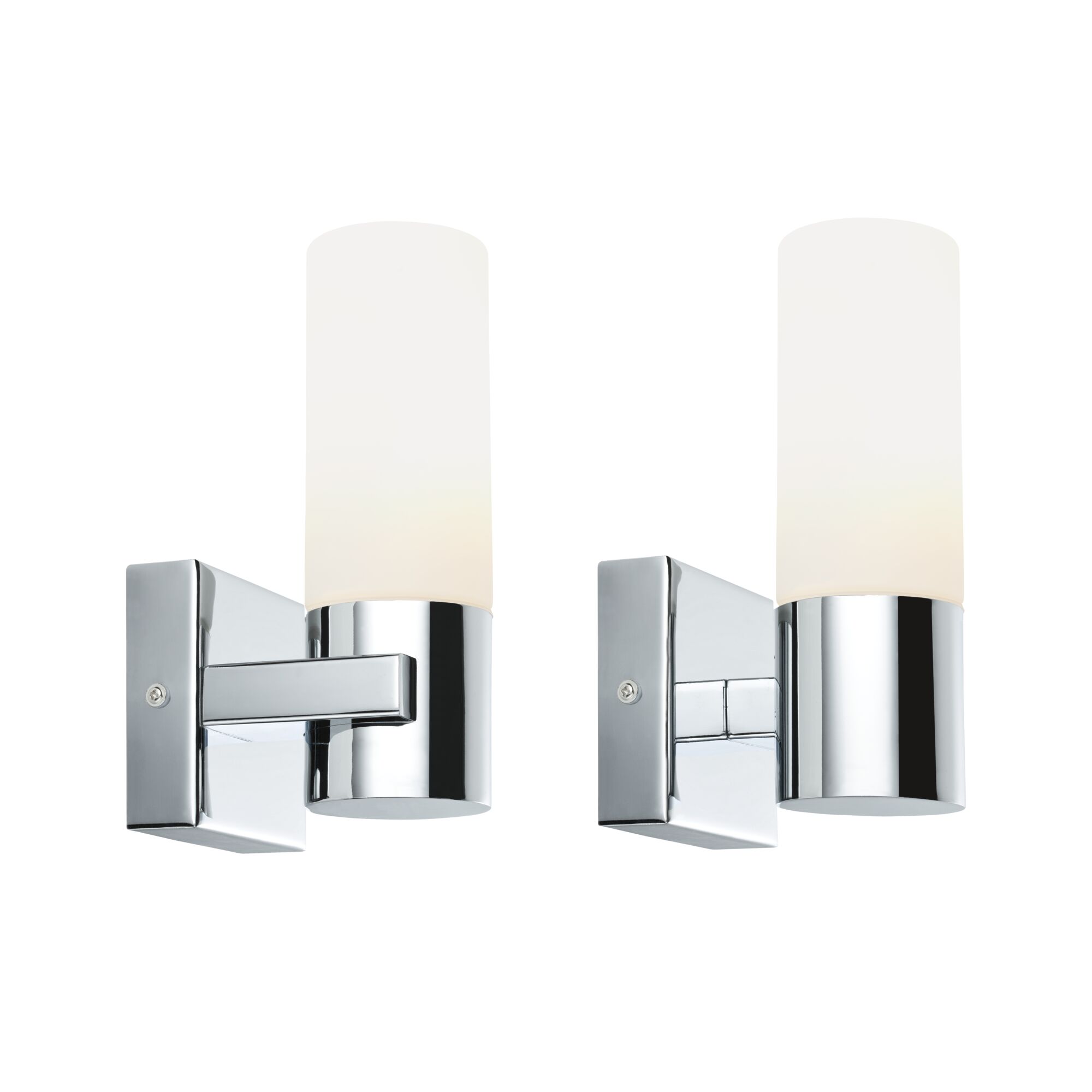 Basic cubic shapes and solid brackets gives the wall and mirror luminaire Gemini its unmistakeable character. The 2-piece set contains a right-hand and left-hand mirror luminaire. Suitable for use in bathrooms or other wet rooms thanks to splash protection. Can be used with energy-saving lamps. Depending on the light source used, the lamp is dimmable.