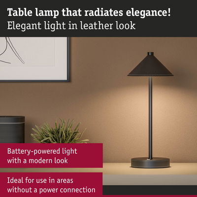 • An exceptional, leather-look table luminaire with lockstitch seams for a stylish ambience.