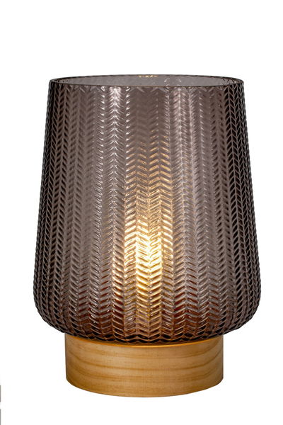 The Fancy Glamour table luminaire features an aesthetic glass body in taupe and creates beautiful light in the living room or bedroom. The stylish texture of the glass, combined with the wood luminaire base, make this table luminaire a uniquely decorative highlight. Placed strategically in any living space, it will create a wonderful light ambience. The portable table lamp is battery-operated so you can use it anywhere you like – regardless of whether there is a power outlet nearby. After 6 hours, the timer automatically switches the table lamp off again. Our tip: Several of these luminaires look beautiful lined up on larger tables, such as the dining table. Note: Please note that batteries are not included in the delivery (3 x AA).