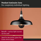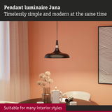 The Juna luminaire series is presented in a timeless, yet modern design language, which makes them a perfect choice for various interior styles, while creating attractive light accents in any living space. The matching table, floor and pendant luminaires in this series offer many combination options. The pendant luminaire in black matt with gorgeous champagne gold accents is so versatile that it can be used as the main light source over the dining table or above the kitchen counter. The premium finish of this luminaire ensures an attractive look and a long service life. A decorative crown mirror lamp with E27 base would be our recommendation for this luminaire to ensure glare-free light.