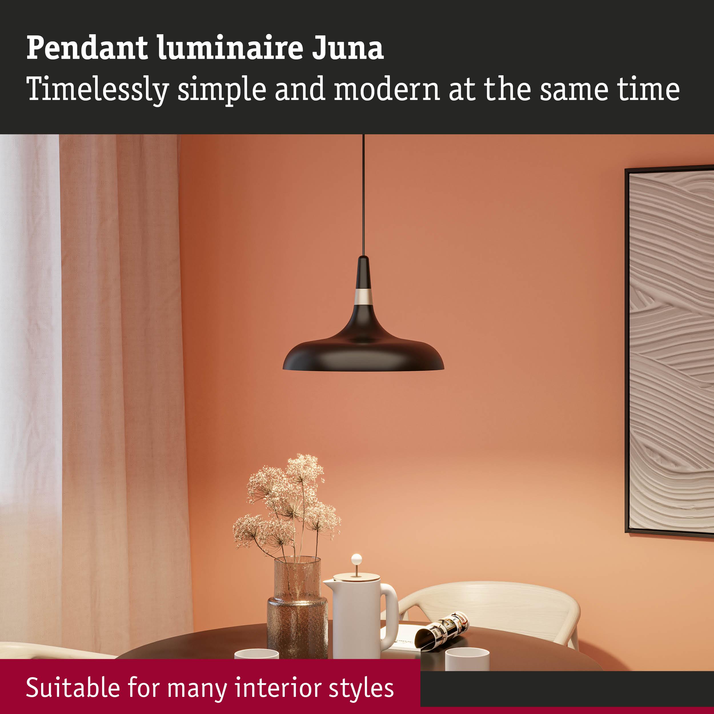 Pendant luminaire Juna E27 max. 20W Black matt/Champagne dimmable Metal
