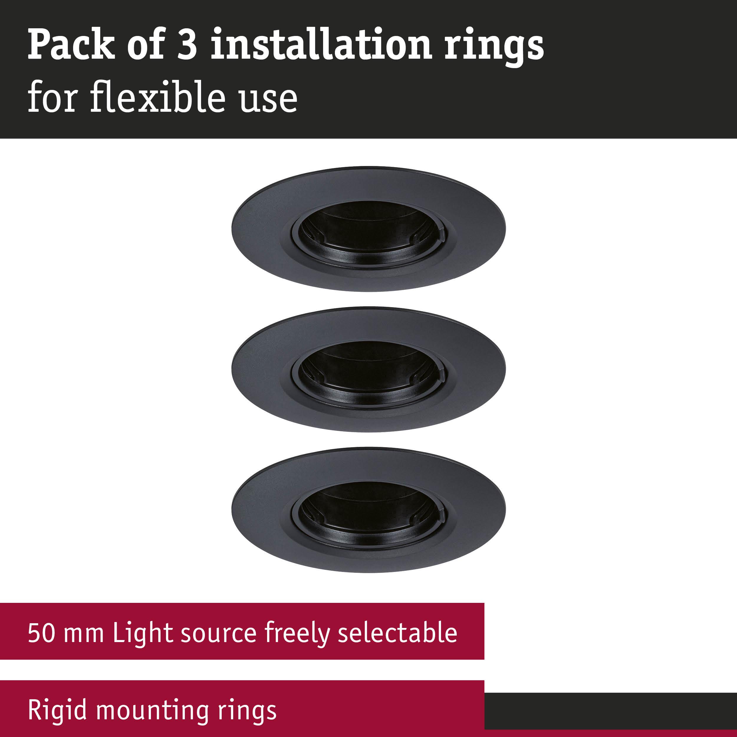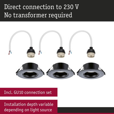 Recessed Luminaire 3-piece set Rigid round 90mm GU10 max. 3x10W 230V dimmable Black