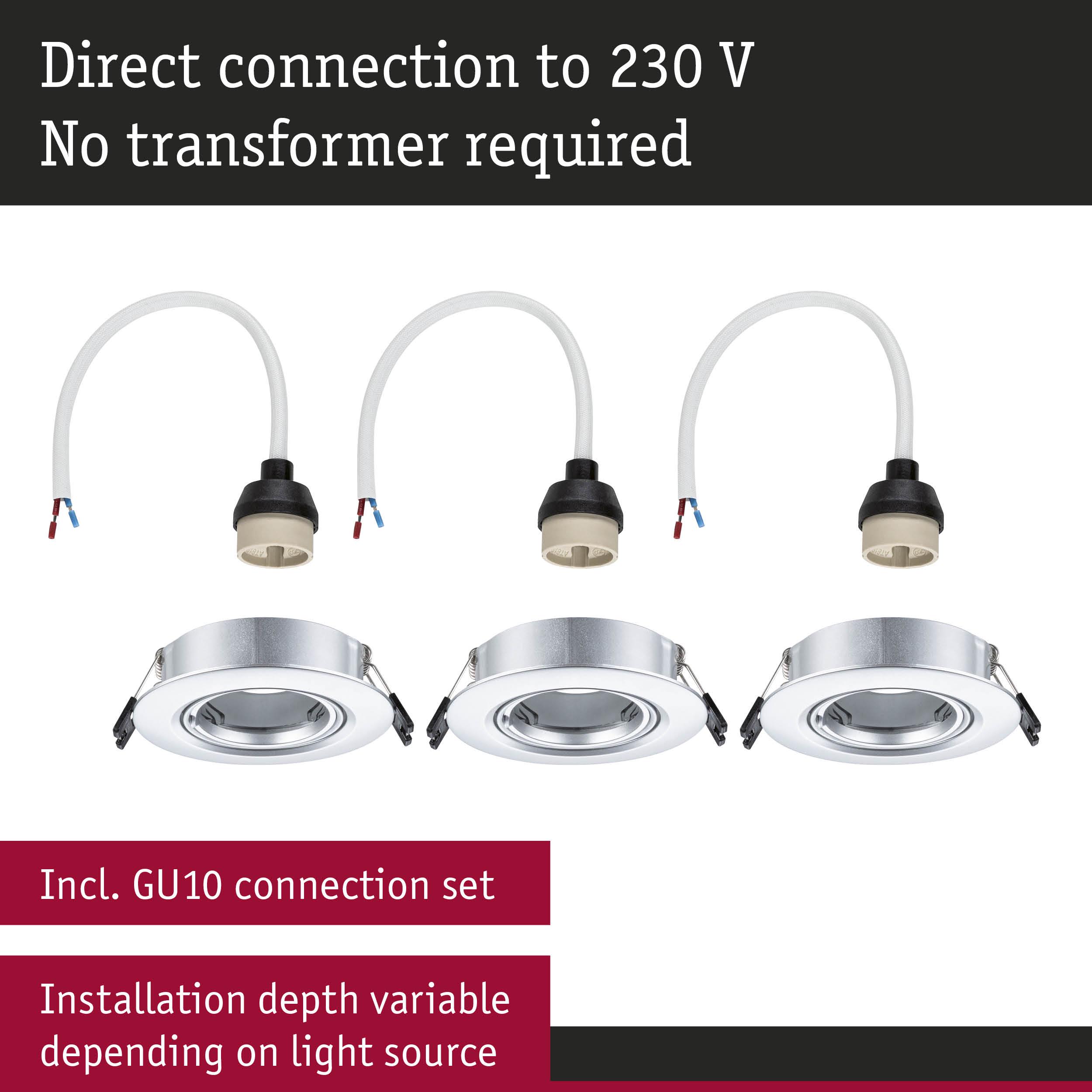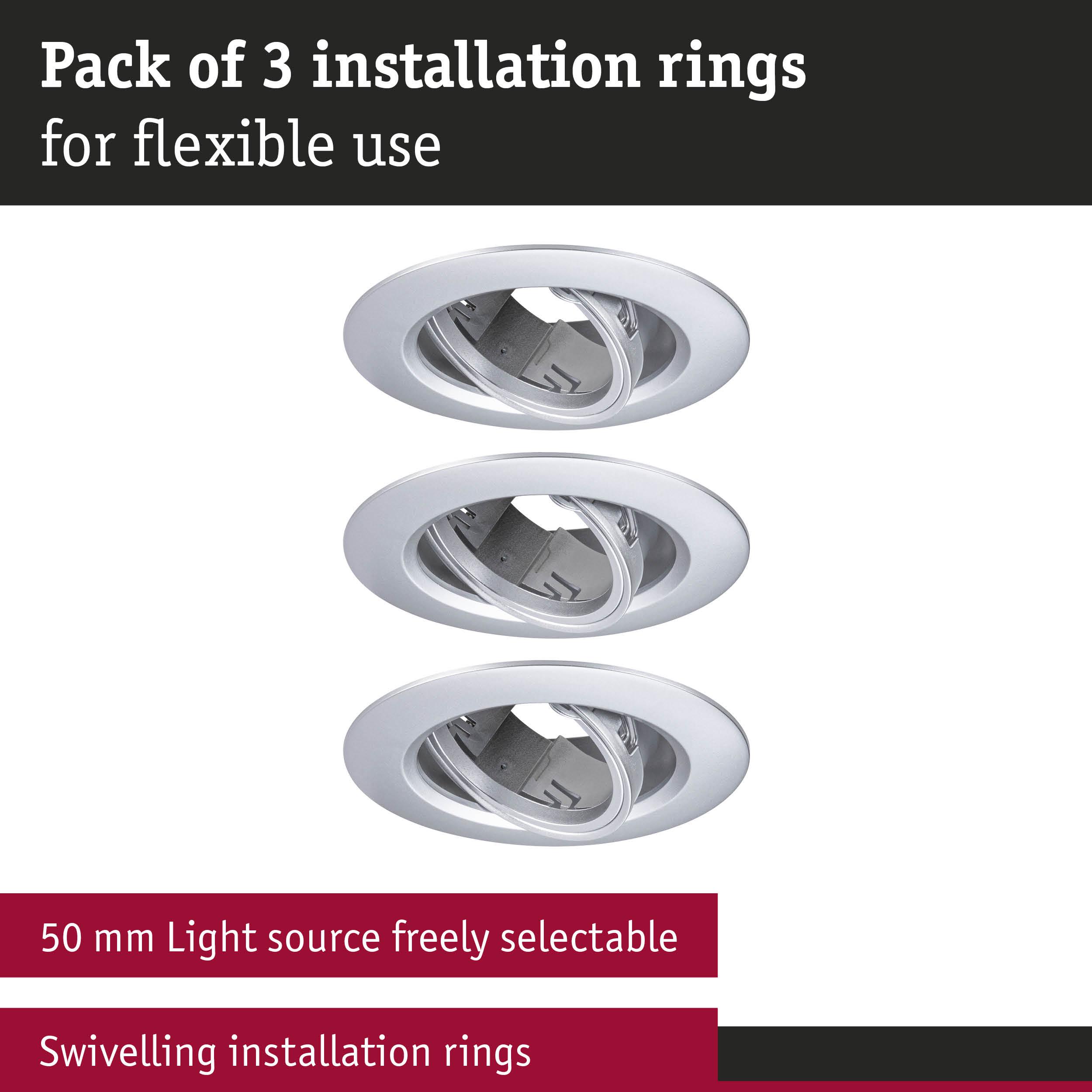 Recessed Luminaire 3-piece set Swivelling round 90mm 30° GU10 max. 3x10W 230V dimmable Chrome matt