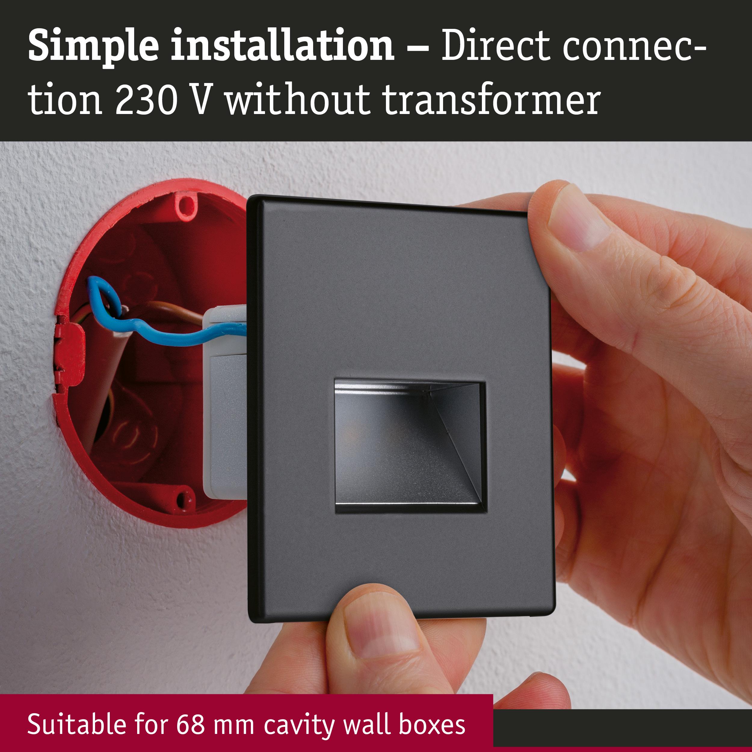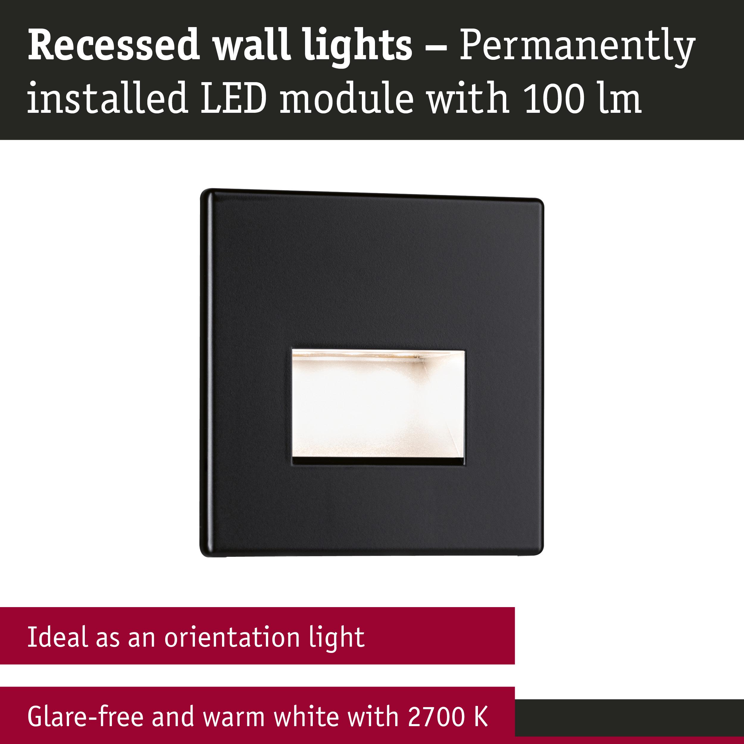 Set LED Recessed wall luminaire Edge 3-piece set angular 80x80mm 3x1,2W 3x50lm 230V 2700K Black matt