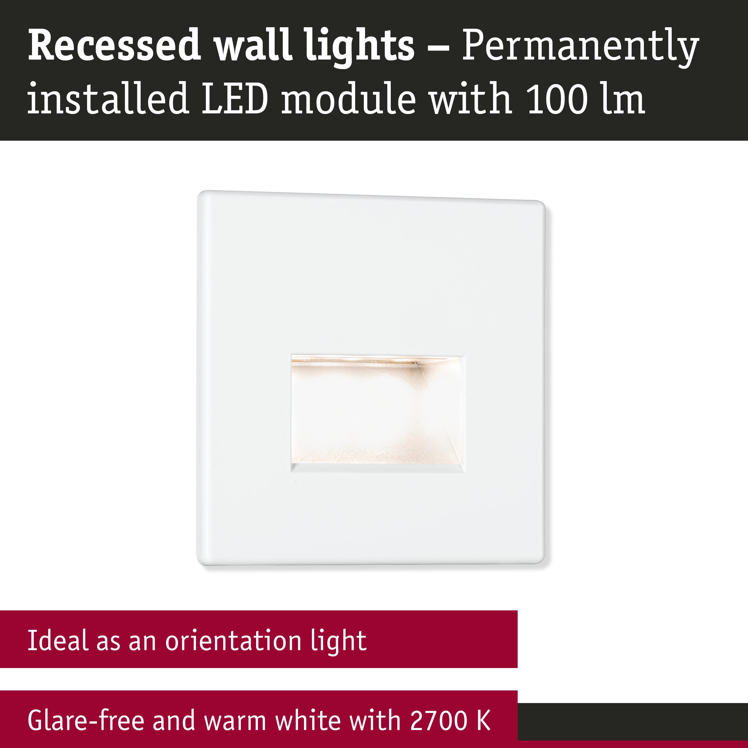 Set LED Recessed wall luminaire Edge 3-piece set angular 80x80mm 3x1,2W 3x50lm 230V 2700K Matt white
