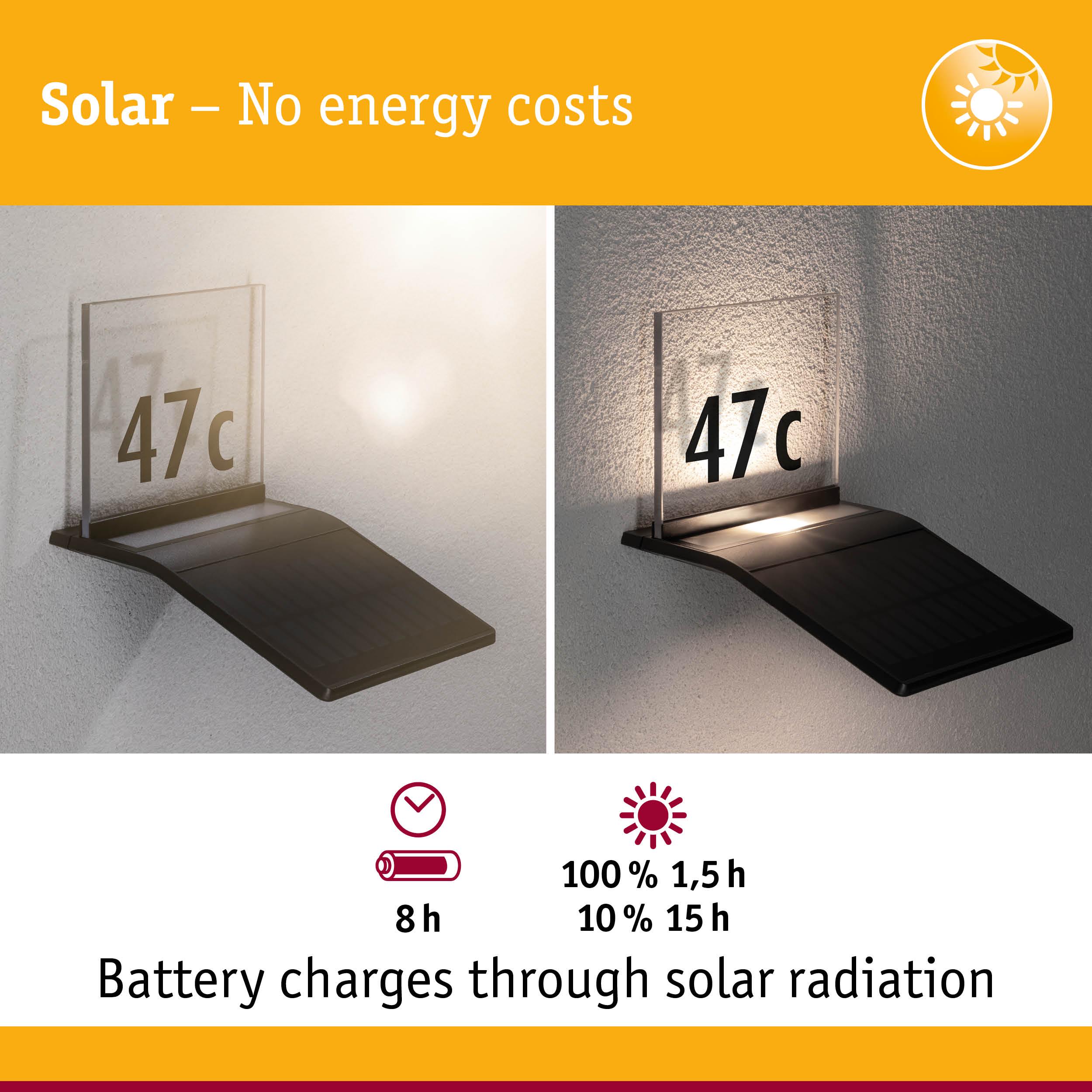 Solar LED House number luminaire Yoko Twilight-controlled motion detector (IR) IP44 3000K 42lm Anthracite