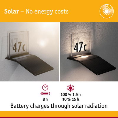 Solar LED House number luminaire Yoko Twilight-controlled motion detector (IR) IP44 3000K 42lm Anthracite