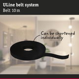 The ULine belt is the basis of the 48V belt-system. It is available in two lengths (5 m and 10 m) and five colours each – from classic black to extraordinary orange – and can be placed anywhere in the room and shortened with scissors if necessary. Associated luminaires can be arranged on the belt as desired. The 2.1 cm width belt can be attached to the wall, ceiling or floor with matching brackets. Sun, a personal lighting concept can be implemented in just a few steps. The tear-resistant and durable Dacron material of the belt ensures a long lifetime and high resilience. The belts are coated and easy to clean. A special highlight is the internal, invisible power supply, which provides a clean look without visible wires. All belts include two silicone end caps for an aesthetic finish. The ULine belt-system is an innovative solution for unique lighting experiences in all dimensions and enables targeted lighting on walls, ceilings and floors.