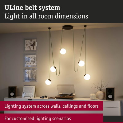 The ULine belt is the basis of the 48V belt-system. It is available in two lengths (5 m and 10 m) and five colours each – from classic black to extraordinary orange – and can be placed anywhere in the room and shortened with scissors if necessary. Associated luminaires can be arranged on the belt as desired. The 2.1 cm width belt can be attached to the wall, ceiling or floor with matching brackets. Sun, a personal lighting concept can be implemented in just a few steps. The tear-resistant and durable Dacron material of the belt ensures a long lifetime and high resilience. The belts are coated and easy to clean. A special highlight is the internal, invisible power supply, which provides a clean look without visible wires. All belts include two silicone end caps for an aesthetic finish. The ULine belt-system is an innovative solution for unique lighting experiences in all dimensions and enables targeted lighting on walls, ceilings and floors.