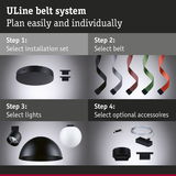 The ULine belt is the basis of the 48V belt-system. It is available in two lengths (5 m and 10 m) and five colours each – from classic black to extraordinary orange – and can be placed anywhere in the room and shortened with scissors if necessary. Associated luminaires can be arranged on the belt as desired. The 2.1 cm width belt can be attached to the wall, ceiling or floor with matching brackets. Sun, a personal lighting concept can be implemented in just a few steps. The tear-resistant and durable Dacron material of the belt ensures a long lifetime and high resilience. The belts are coated and easy to clean. A special highlight is the internal, invisible power supply, which provides a clean look without visible wires. All belts include two silicone end caps for an aesthetic finish. The ULine belt-system is an innovative solution for unique lighting experiences in all dimensions and enables targeted lighting on walls, ceilings and floors.