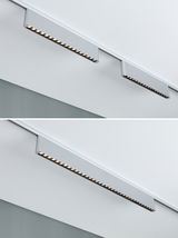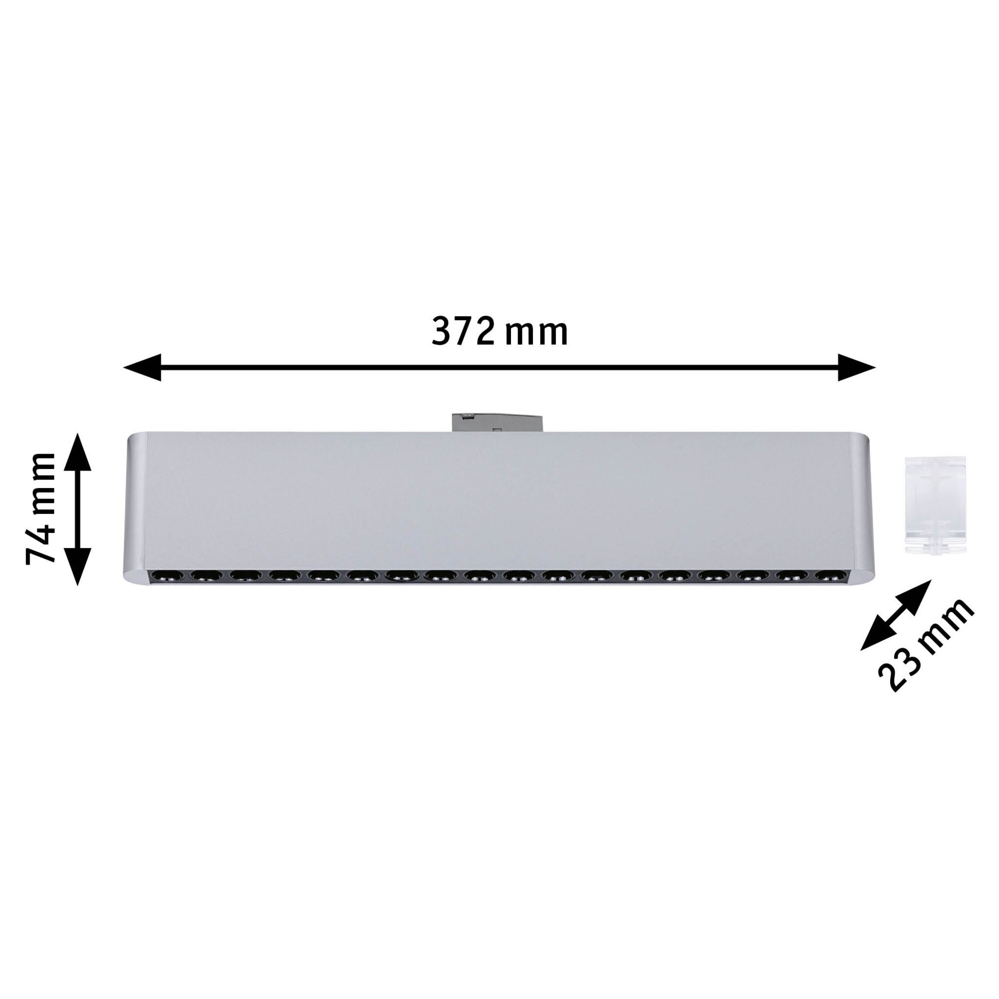 The URail light bar Zelos in Chrome matt, with a colour temperature of 3000K, creates a pleasant warm white lighting mood in living spaces, offices, hallways or other rooms. Meanwhile, multiple lenses in a row ensure directed light. Consisting of high-quality aluminium and a simple design, it seamlessly blends into individual living concepts. Is the 32.2-cm length less than ideal? No problem – to achieve the perfect length for different rooms, any number of light bars can be connected in series. To do so, simply remove the end caps and connect the light bars using the enclosed connectors until the desired length is achieved. They can also be effortlessly connected to Ceris light bars. Another highlight is the three-step dimming function, which allows the brightness to be adjusted in three stages via a conventional light switch. For maximum convenience, the memory function stores the most recently selected setting until next activation.
