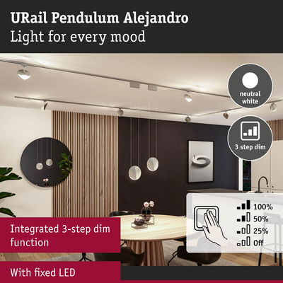URail Pendants 3-Step-Dim Alejandro 800lm 10W 4000K dimmable 230V Chrome matt