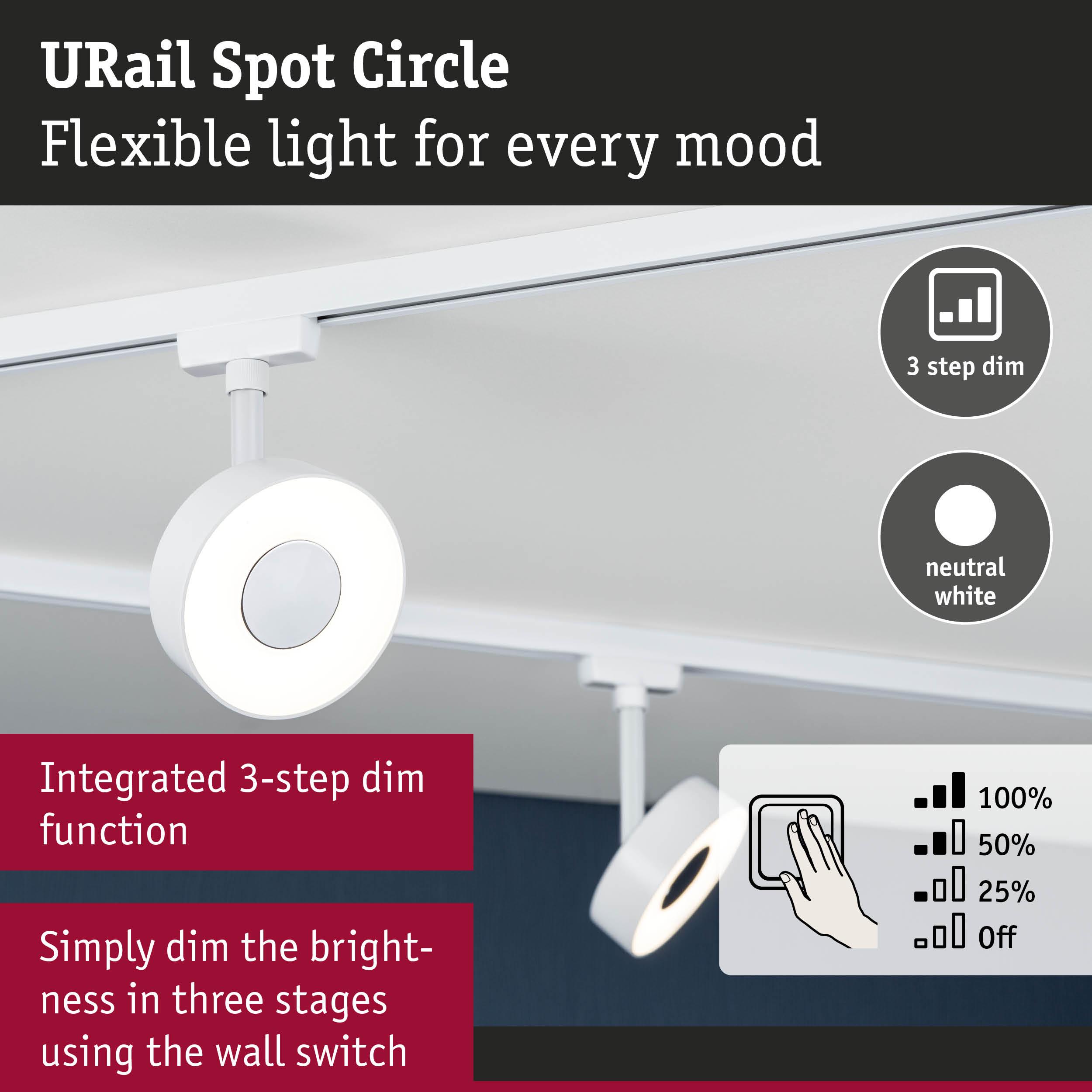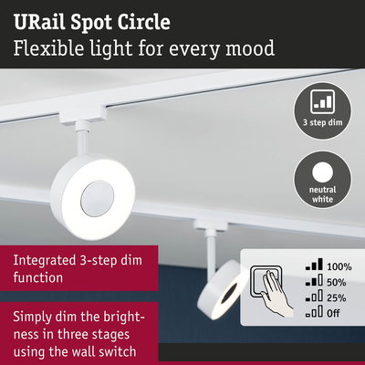 URail Rail spot 3-Step-Dim Circle 220lm 5W 4000K dimmable 230V Signal white