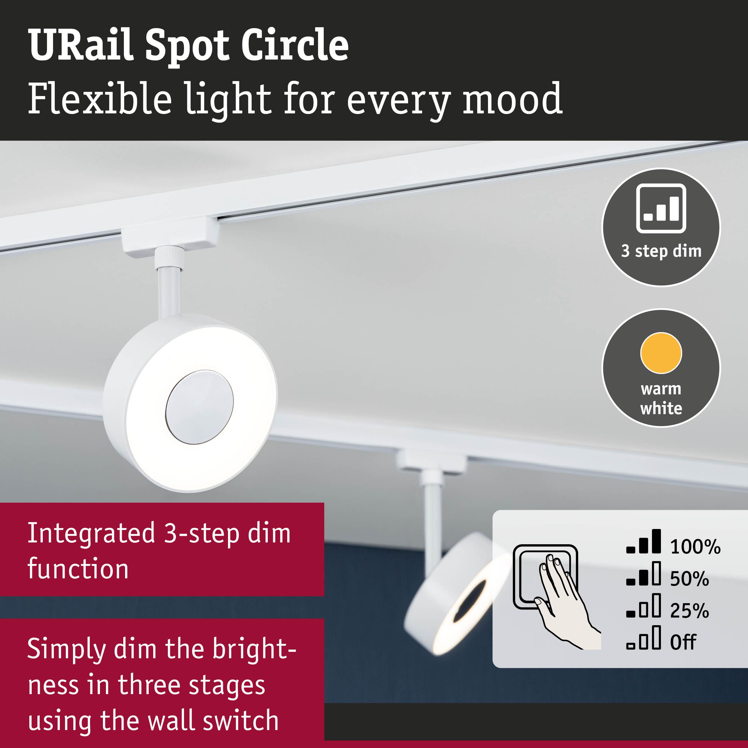 URail Rail spot 3-Step-Dim Circle 280lm 5W 3000K dimmable 230V Signal white