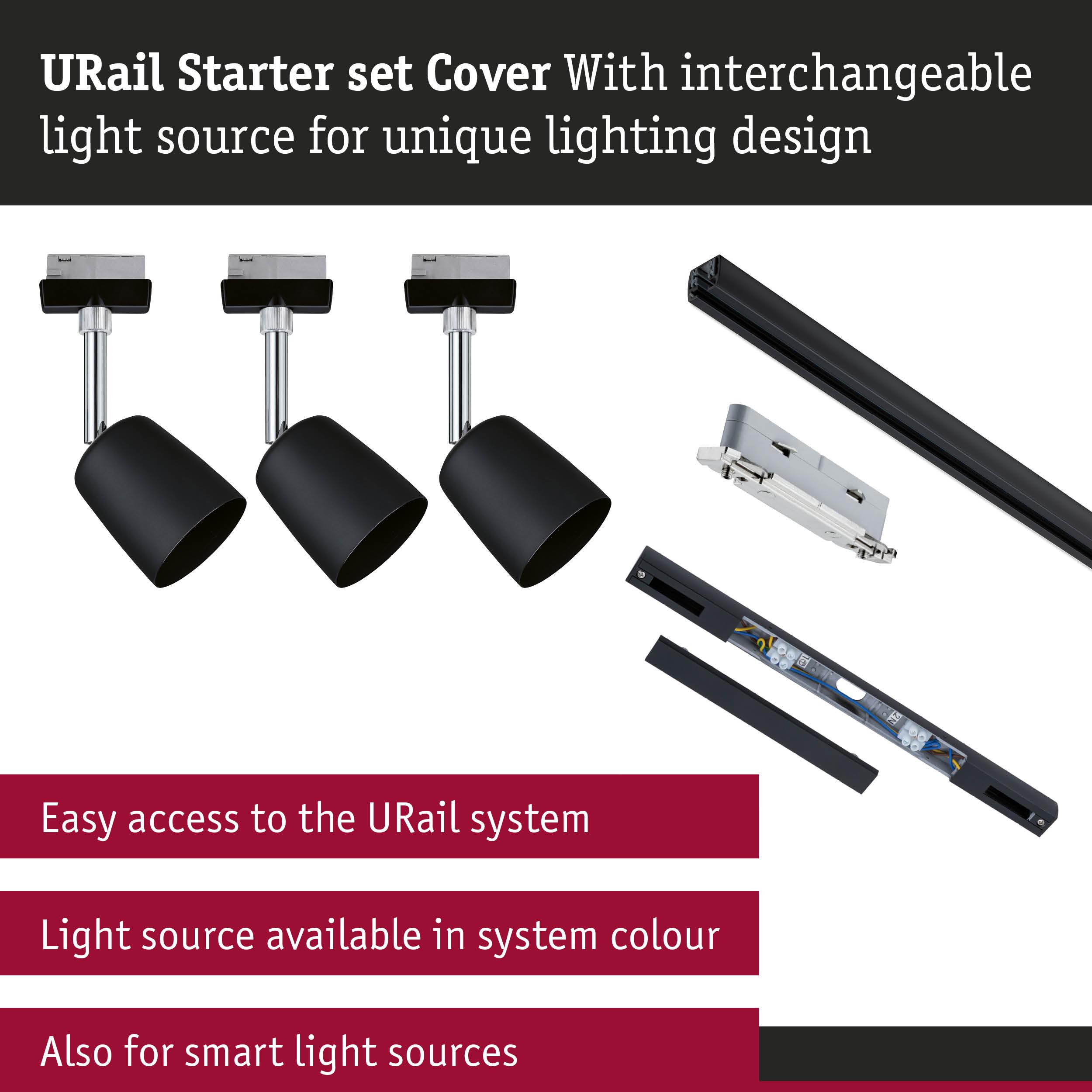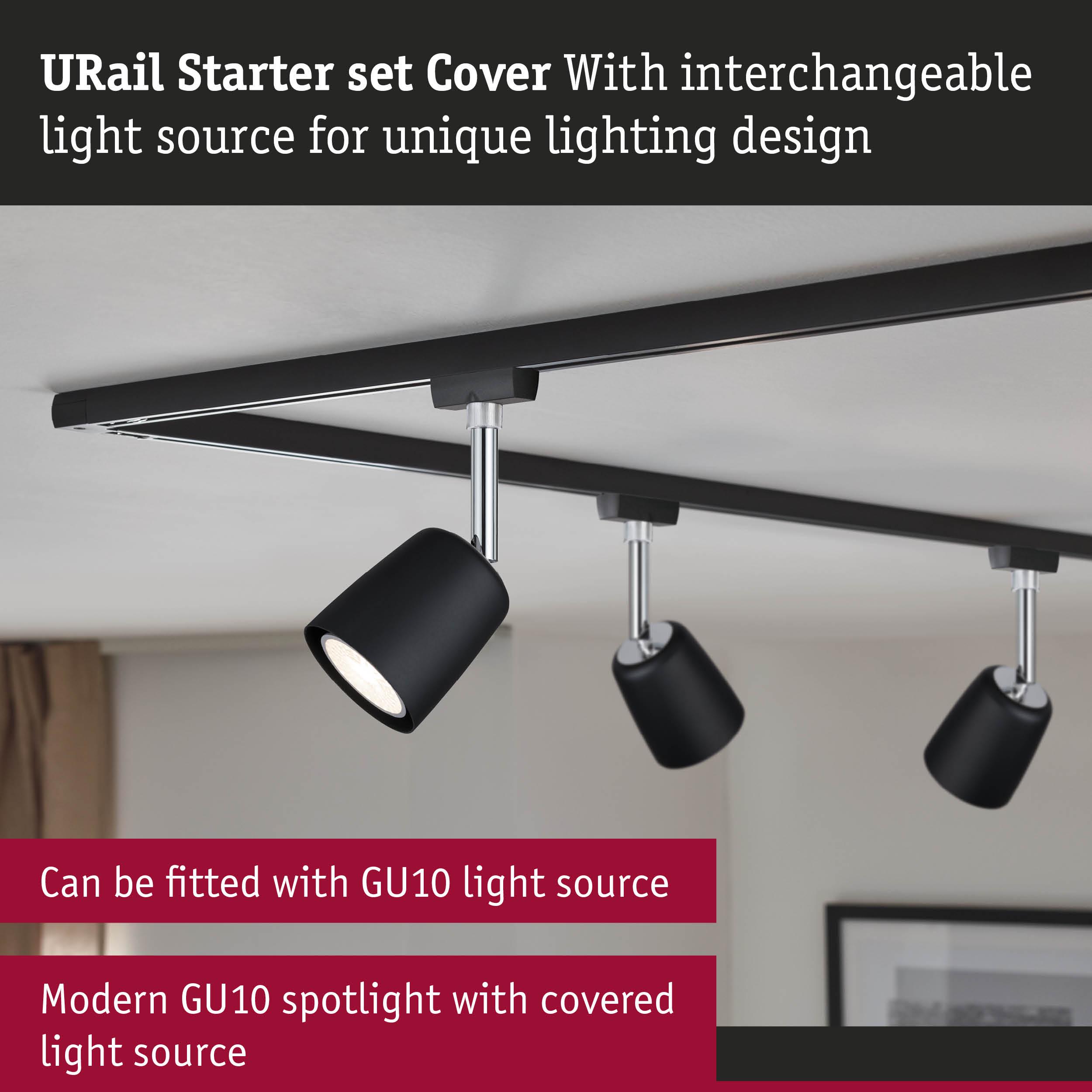 URail Rail spot Cover Starter set GU10 max. 10W dimmable 230V Black matt/Chrome
