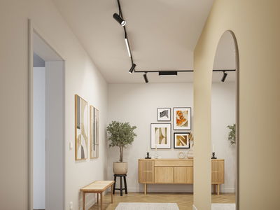 Der warm white Theron rail spot in Black matt is particularly energy-efficient, and its over 1000lm output ensures extra bright illumination. The high colour rendering index of CRI ≥90 guarantees natural and bright light colours. The light of the swivelling, tube-shaped spot can be flexibly directed where it is needed. The brightness can be set to 100%, 50%, and 25% via a simple commercial light switch – allowing you to adjust custom lighting scenarios to any situation. The integrated Memory function triggers the use of the most recently selected dimming level when the light is switched on. A long service life of 50,000h ensures reliable, long-term use. In combination with the corresponding URail components, you can create your own custom lighting system with a total output of max. 1000W.
